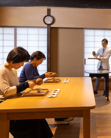 淹れ方でいかようにも変わるお茶の味わい。味づくりの「基本の“キ”」を中心にお伝えします。コースは抹茶、玉露、煎茶、番茶の4つ。お好きなお茶のコースをお選びください。