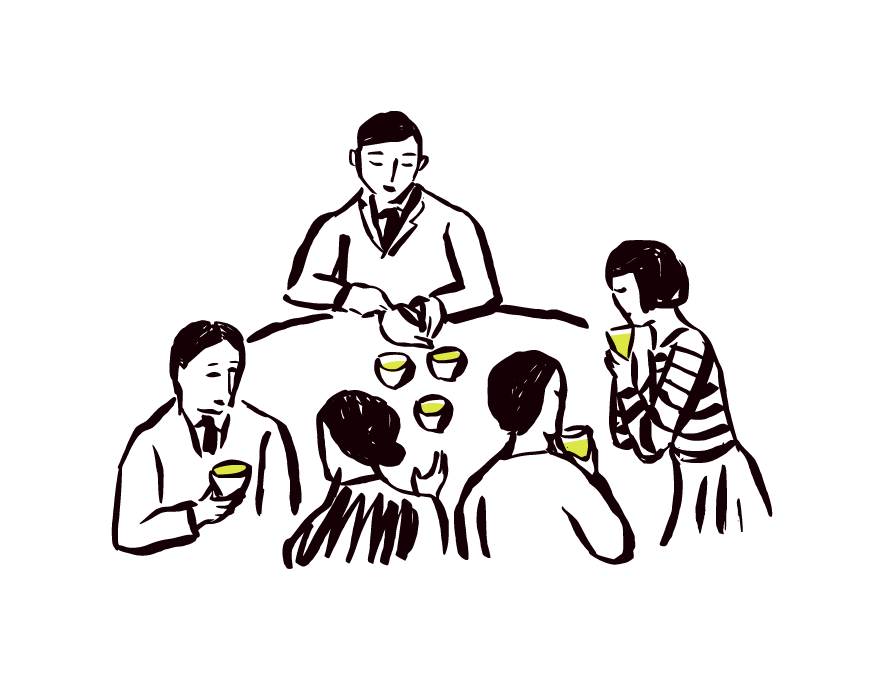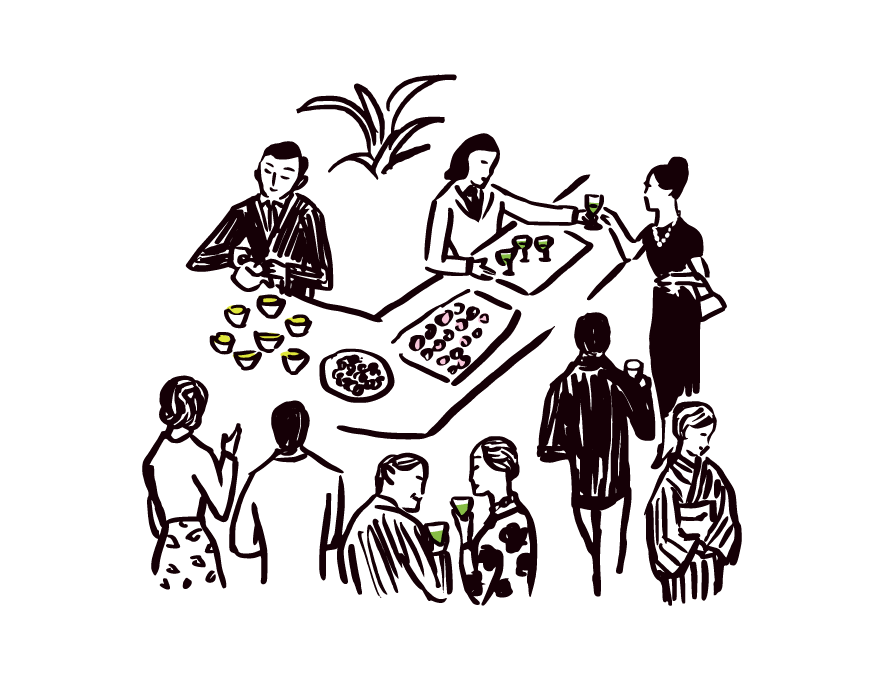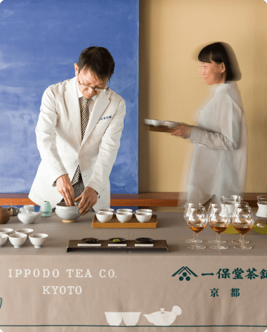 会社や店舗などで開かれるパーティやイベントに一保堂のスタッフが赴き、淹れたてのお茶でおもてなしをいたします。淹れるところからゲストの皆さまがご覧になれるよう、キッチンとなるスペースのしつらいまでご用意いたします。まずは、パーティやイベントのテーマをお聞かせください。テーマに合わせたメニューをご提案いたします。